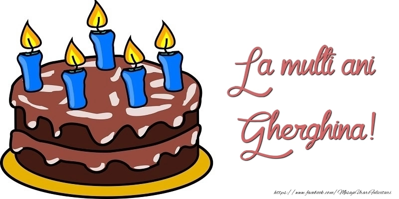 Indiferent de vârstă, un tort de ciocolată cu lumânări este mereu o alegere perfectă pentru a sărbători ziua de naștere într-un mod festiv și delicios. Fiecare bucățică din acest tort de ciocolată aduce un strop de dulceață și un zâmbet pe fața destinatarului. Lumânările aprinse marchează începutul unui nou an plin de lumină și fericire. Transmite acum cele mai sincere urări de La Mulți Ani pentru Gherghina! Imaginea are dimensiunile 800px x 400px și textul La multi ani, Gherghina!. Felicitarea se poate descărca gratuit sau se poate trimite prin Whatsapp, Facebook, Twitter, Pinterest.