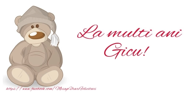 Această felicitare cu ursuleț simpatic din colecția noastră de felicitari de la multi ani cu numele Gicu are o notă de originalitate și îți oferă ocazia să faci o persoană să se simtă specială datorită faptului că acolo este numele ei. Felicitarea se poate descărca gratuit sau se poate trimite prin Whatsapp, Facebook, Twitter, Pinterest. Imagine de la mulți ani cu ursuleț simpatic cu dimensiunile 600px x 300px și cu textul La multi ani Gicu!.