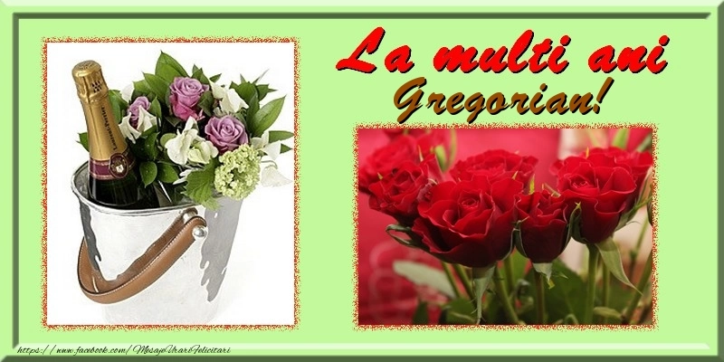 Felicitarea cu tablou cu trandafiri pe fundal verde este ca o explozie de bucurie și culoare, iar numele Gregorian este adăugat cu gingășie pentru a personaliza această experiență de sărbătoare. Este modul tău de a spune la mulți ani într-un mod unic și special!