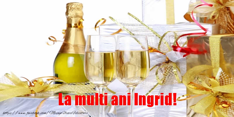 La multi ani Ingrid! | Felicitare cu șampanie cu 2 pahare și cadouri | Felicitari de la multi ani
