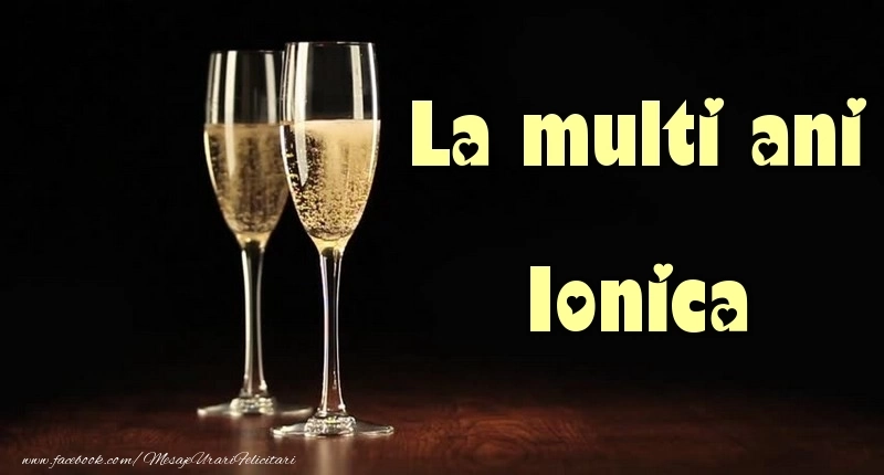 La multi ani Ionica | Felicitare cu pahare de sampanie pe fundal negru | Felicitari de la multi ani