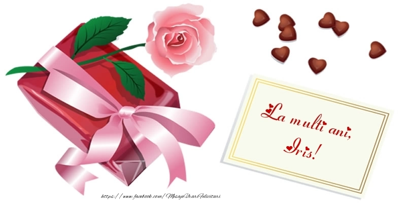 Cu un design elegant și romantic, acestă felicitare unică combină frumusețea unui trandafir roz cu deliciul unor bomboane în formă de inimă. Trandafirul roz este simbolul iubirii și al delicateții, iar bomboanele în formă de inimă adaugă un strop de dulceață și pasiune în acest dar special. Felicitarea pentru Iris cu se poate descărca gratuit sau se poate trimite prin Whatsapp, Facebook, Twitter, Pinterest. Imaginea are dimensiunile 800px x 400px și textul La multi ani, Iris!.