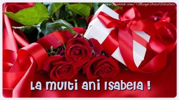 Această felicitare cu cadou și 3 trandafiri roșii pe fundal roșu din colecția noastră de felicitari de zi de nastere cu numele Isabela are o notă de originalitate și îți oferă ocazia să faci o persoană să se simtă specială datorită faptului că acolo este numele ei. Felicitarea se poate descărca gratuit sau se poate trimite prin Whatsapp, Facebook, Twitter, Pinterest. Imagine de zi de nastere cu cadou și 3 trandafiri roșii pe fundal roșu cu dimensiunile 600px x 335px și cu textul La multi ani Isabela !.