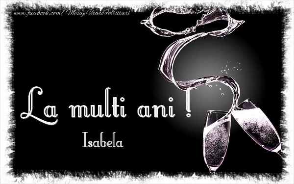 Paharele de șampanie pe fundal negru sunt alese cu atenție pentru a completa atmosfera festivă a sărbătorii și pentru a marca în mod elegant momentul special al ziua de naștere a destinatarului. Felicitarea cu pahare de șampanie pe fundal negru este o adevărată explozie de bucurie și veselie, perfectă pentru a sărbători într-un mod memorabil. Felicitarea se poate descărca gratuit sau se poate trimite prin Whatsapp, Facebook, Twitter, Pinterest. Imaginea are dimensiunile 600px x 375px și textul La multi ani Isabela.