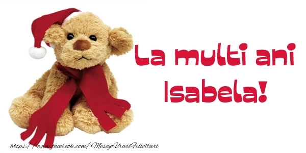 Felicitarea cu ursuleț de pluș pregătit de iarnă este ca o explozie de bucurie și culoare, iar numele Isabela este adăugat cu gingășie pentru a personaliza această experiență de sărbătoare. Este modul tău de a spune la mulți ani într-un mod unic și special!