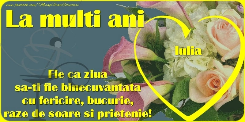 La multi ani, Iulia. Fie ca ziua sa-ti fie binecuvantata cu fericire, bucurie, raze de soare si prietenie!