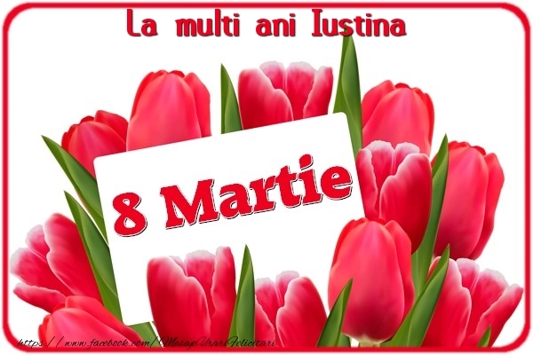 Oferiți mai mult decât un simplu cadou - oferiți o emoție personalizată de Ziua Femeii cu numele Iustina! Felicitarea de 8 Martie cu buchet de lalele roșii cu un bilet este menită să încânte și să emoționeze, sărbătorind feminitatea în toată splendoarea sa.