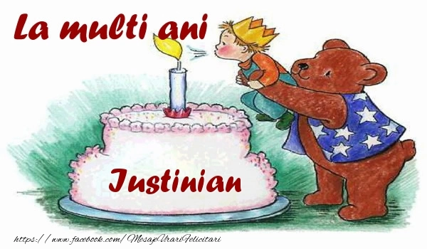 Trimiteți această felicitare plină de tandrețe pentru a sărbători momentul unic al unei noi începuturi. Fiecare detaliu, de la ursulețul simpatic până la copilul și tortul cu o lumânare, este menit să aducă fericire și sărbătoare în inima celui care o primește. Acestă felicitare este o modalitate adorabilă de a spune 'La mulți ani, Iustinian!' într-un mod cu totul unic și memorabil. Felicitarea se poate descărca gratuit sau se poate trimite prin Whatsapp, Facebook, Twitter, Pinterest. Imaginea are dimensiunile 600px x 350px și textul La multi ani Iustinian.