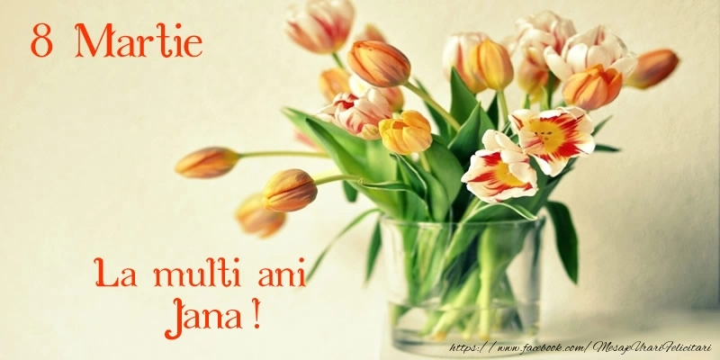 Oferiți mai mult decât un simplu cadou - oferiți o emoție personalizată de Ziua Femeii cu numele Jana! Felicitarea de 8 Martie cu lalele roz și roze in pahar este menită să încânte și să emoționeze, sărbătorind feminitatea în toată splendoarea sa.