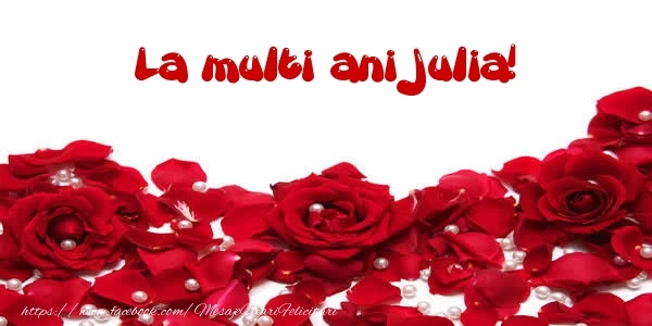 Această felicitare cu trandafiri roșii pe fundal alb din colecția noastră de felicitari de la multi ani cu numele Julia are o notă de originalitate și îți oferă ocazia să faci o persoană să se simtă specială datorită faptului că acolo este numele ei. Felicitarea se poate descărca gratuit sau se poate trimite prin Whatsapp, Facebook, Twitter, Pinterest. Imagine de la mulți ani cu trandafiri roșii pe fundal alb cu dimensiunile 600px x 300px și cu textul La multi ani Julia!.