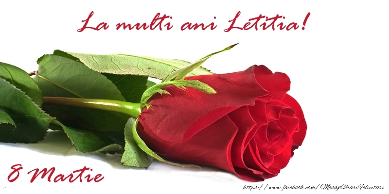 Oferiți mai mult decât un simplu cadou - oferiți o emoție personalizată de Ziua Femeii cu numele Letitia! Felicitarea de 8 Martie cu trandafir pentru fete este menită să încânte și să emoționeze, sărbătorind feminitatea în toată splendoarea sa.