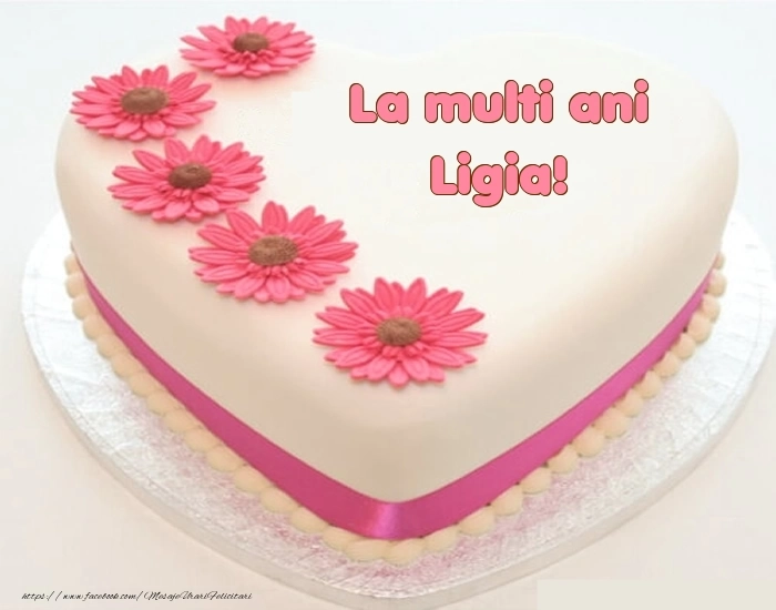 Transformă ziua de naștere a cuiva drag într-un moment de neuitat cu felicitarea cu numele Ligia, care îți aduce un tort încântător în formă de inimă, decorat cu 5 flori delicate și vibrante, simbol al dragostei și afecțiunii.