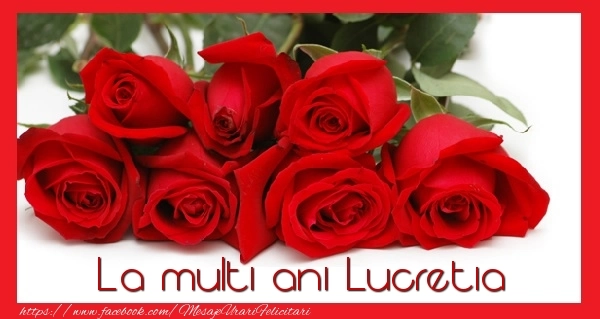 Această felicitare cu trandafiri roșii cu chenar roșu din colecția noastră de felicitari de la multi ani cu numele Lucretia are o notă de originalitate și îți oferă ocazia să faci o persoană să se simtă specială datorită faptului că acolo este numele ei. Felicitarea se poate descărca gratuit sau se poate trimite prin Whatsapp, Facebook, Twitter, Pinterest. Imagine de la mulți ani cu trandafiri roșii cu chenar roșu cu dimensiunile 600px x 319px și cu textul La multi ani Lucretia.