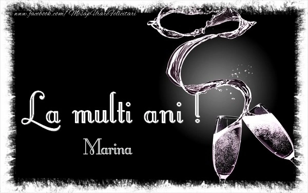 Paharele de șampanie pe fundal negru sunt alese cu atenție pentru a completa atmosfera festivă a sărbătorii și pentru a marca în mod elegant momentul special al ziua de naștere a destinatarului. Felicitarea cu pahare de șampanie pe fundal negru este o adevărată explozie de bucurie și veselie, perfectă pentru a sărbători într-un mod memorabil. Felicitarea se poate descărca gratuit sau se poate trimite prin Whatsapp, Facebook, Twitter, Pinterest. Imaginea are dimensiunile 600px x 375px și textul La multi ani Marina.