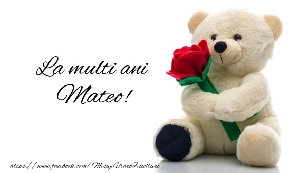 Felicitarea cu ursuleț de pluș cu un trandafir in brațe este ca o explozie de bucurie și culoare, iar numele Mateo este adăugat cu gingășie pentru a personaliza această experiență de sărbătoare. Este modul tău de a spune la mulți ani într-un mod unic și special!