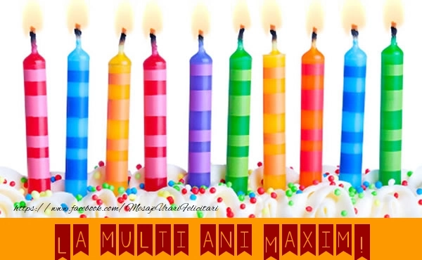 Felicitarea cu lumanări este ca o explozie de bucurie și culoare, iar numele Maxim este adăugat cu gingășie pentru a personaliza această experiență de sărbătoare. Este modul tău de a spune la mulți ani într-un mod unic și special!