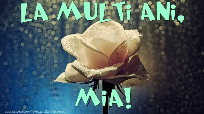 Această felicitare cu trandafir în ploaie din colecția noastră de felicitari de la multi ani cu numele Mia are o notă de originalitate și îți oferă ocazia să faci o persoană să se simtă specială datorită faptului că acolo este numele ei. Felicitarea se poate descărca gratuit sau se poate trimite prin Whatsapp, Facebook, Twitter, Pinterest. Imagine de la mulți ani cu trandafir în ploaie cu dimensiunile 800px x 450px și cu textul La multi ani, Mia.
