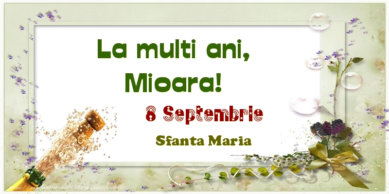 La multi ani, Mioara! 8 Septembrie Sfanta Maria | Felicitare cu aranjament cu sampanie și flori | Felicitari de Ziua Numelui