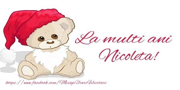 Felicitarea cu ursuleț cu căciulă de moș este ca o explozie de bucurie și culoare, iar numele Nicoleta este adăugat cu gingășie pentru a personaliza această experiență de sărbătoare. Este modul tău de a spune la mulți ani într-un mod unic și special!