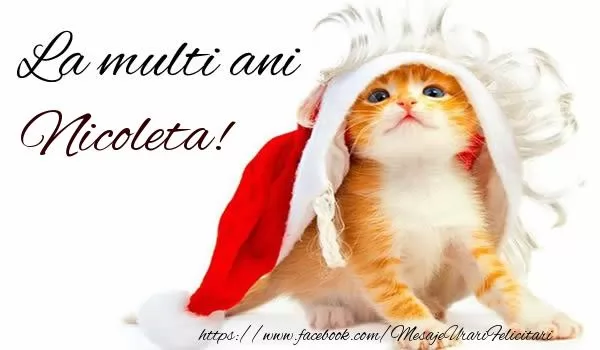 Această felicitare cu pisicuță simpatică din colecția noastră de felicitari de la multi ani cu numele Nicoleta are o notă de originalitate și îți oferă ocazia să faci o persoană să se simtă specială datorită faptului că acolo este numele ei. Felicitarea se poate descărca gratuit sau se poate trimite prin Whatsapp, Facebook, Twitter, Pinterest. Imagine de la mulți ani cu pisicuță simpatică cu dimensiunile 600px x 350px și cu textul La multi ani Nicoleta!.