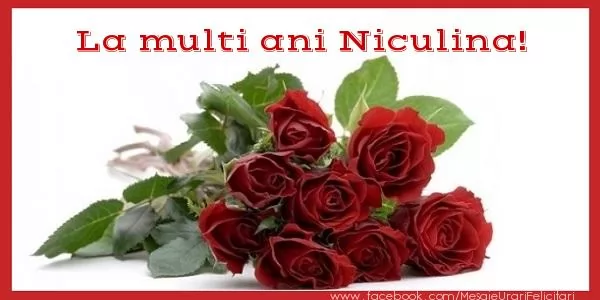 Celebrează ziua de naștere a unei persoane dragi cu numele Niculina într-un mod elegant și rafinat cu felicitarea noastră, care îmbină frumusețea unui buchet de trandafiri cu eleganța unui chenar roșu cu detalii fine.