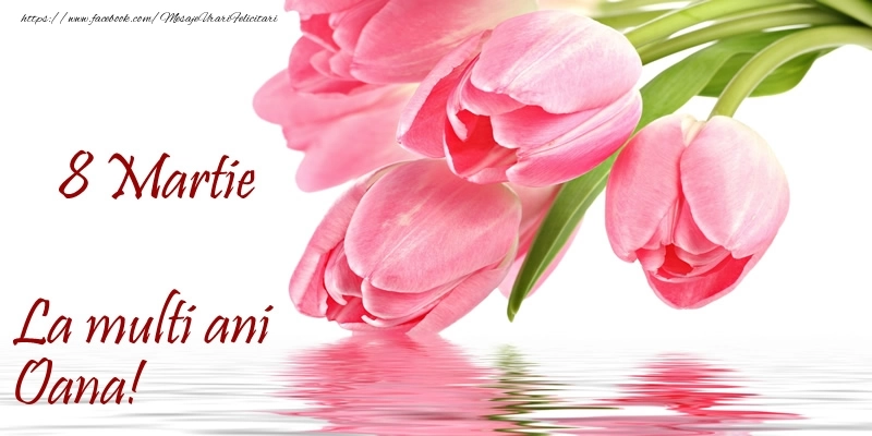 Oferiți mai mult decât un simplu cadou - oferiți o emoție personalizată de Ziua Femeii cu numele Oana! Felicitarea de 8 Martie cu lalele roz pentru fete este menită să încânte și să emoționeze, sărbătorind feminitatea în toată splendoarea sa.