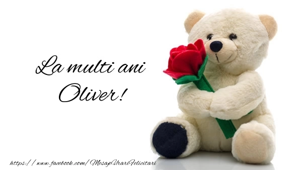 Această felicitare cu ursuleț de pluș cu un trandafir in brațe din colecția noastră de felicitari de la multi ani cu numele Oliver are o notă de originalitate și îți oferă ocazia să faci o persoană să se simtă specială datorită faptului că acolo este numele ei. Felicitarea se poate descărca gratuit sau se poate trimite prin Whatsapp, Facebook, Twitter, Pinterest. Imagine de la mulți ani cu ursuleț de pluș cu un trandafir in brațe cu dimensiunile 600px x 338px și cu textul La multi ani Oliver!.