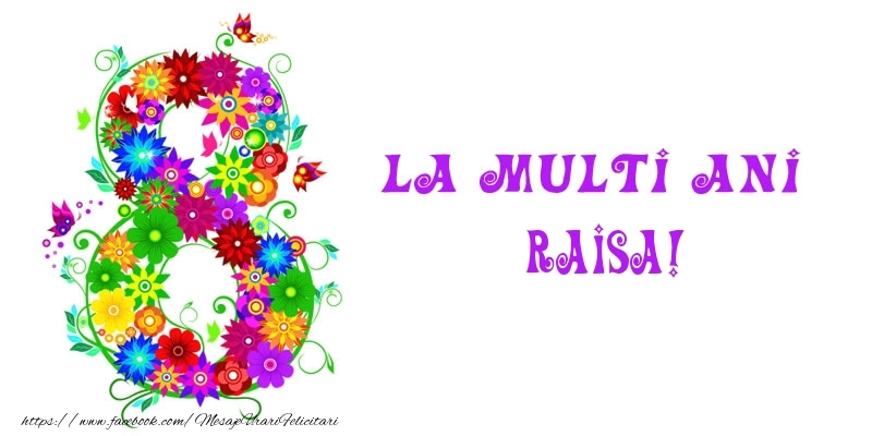 Oferiți mai mult decât un simplu cadou - oferiți o emoție personalizată de Ziua Femeii cu numele Raisa! Felicitarea de 8 Martie cu aranjament floral cu 8 Martie este menită să încânte și să emoționeze, sărbătorind feminitatea în toată splendoarea sa.