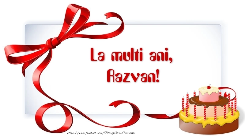 Cu fiecare lumânare aprinsă, se vor împlini dorințele cele mai dulci și visele cele mai frumoase pentru anii ce vor urma. Cu un design atrăgător și plin de culoare, această felicitare cu tort cu lumânări promite să transforme ziua de naștere într-un moment de neuitat. Felicitarea se poate descărca gratuit sau se poate trimite prin Whatsapp, Facebook, Twitter, Pinterest. Imaginea are dimensiunile 800px x 450px și textul La multi ani, Razvan!.