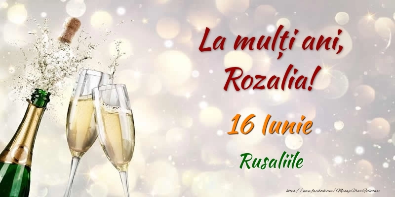 La multi ani, Rozalia! 16 Iunie Rusaliile | Felicitare cu șampanie care se deschide și 2 pahare | Felicitari de Ziua Numelui