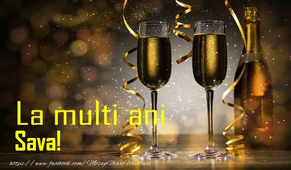 Felicitarea cu șampanie pe fundal cu auriu este ca o explozie de bucurie și culoare, iar numele Sava este adăugat cu gingășie pentru a personaliza această experiență de sărbătoare. Este modul tău de a spune la mulți ani într-un mod unic și special!
