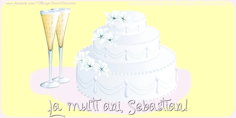 Această felicitare cu tort de frișcă și pahare de șampanie din colecția noastră de felicitari de zi de nastere cu numele Sebastian are o notă de originalitate și îți oferă ocazia să faci o persoană să se simtă specială datorită faptului că acolo este numele ei. Felicitarea se poate descărca gratuit sau se poate trimite prin Whatsapp, Facebook, Twitter, Pinterest. Imagine de zi de nastere cu tort de frișcă și pahare de șampanie cu dimensiunile 800px x 400px și cu textul La multi ani, Sebastian!.