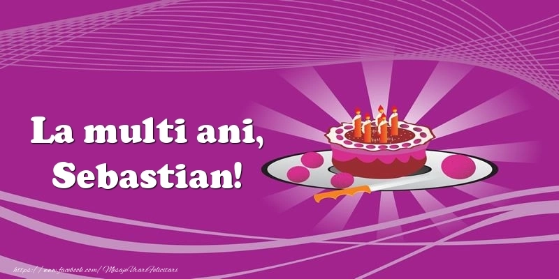 Cu un design atrăgător și plin de culoare, acestă felicitare specială cu numele Sebastian îmbină elemente care să se potrivească gusturilor și preferințelor tuturor. Imaginea cu tort pentru fete sau băieți are dimensiunile 800px x 400px și textul La multi ani, Sebastian!. Felicitarea cu se poate descărca gratuit sau se poate trimite prin Whatsapp, Facebook, Twitter, Pinterest.