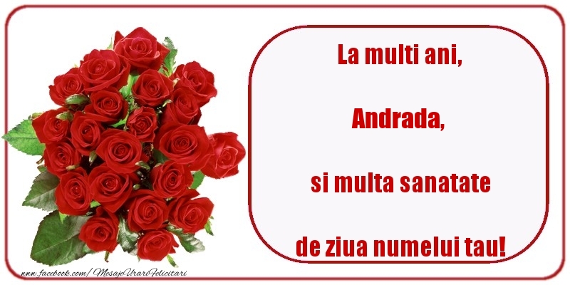 La multi ani, si multa sanatate de ziua numelui tau! Andrada | Felicitare cu trandafiri roșii | Felicitari de Ziua Numelui
