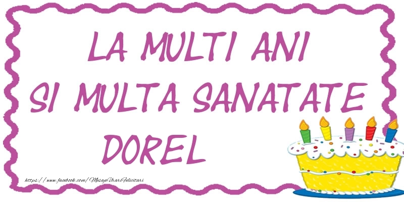 Fiecare detaliu al acestei felicitări cu cadru cu tort pe fundal alb transmite cele mai sincere urări de La Mulți Ani pentru ziua de naștere a destinatarului. Simplitatea fundalului alb îi permite tortului să strălucească în întreaga sa splendoare, simbolizând bucuria și fericirea din această zi specială. Felicitarea se poate descărca gratuit sau se poate trimite prin Whatsapp, Facebook, Twitter, Pinterest. Imaginea are dimensiunile 800px x 400px și textul La multi ani si multa sanatate Dorel.