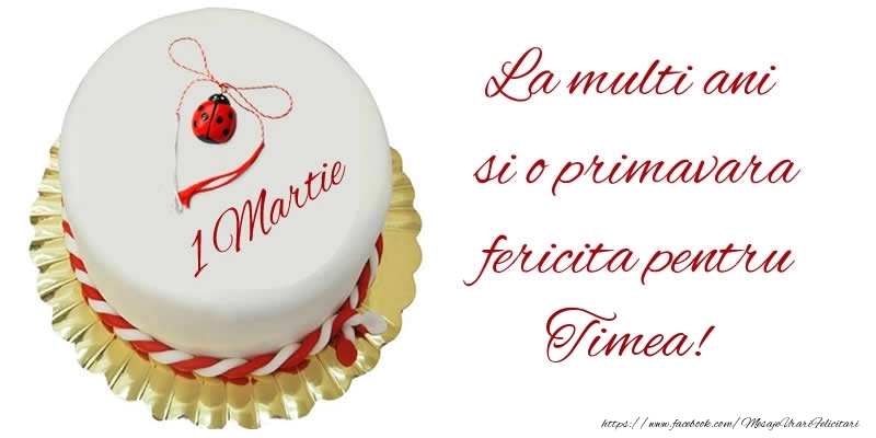 Transformă Mărțișorul într-o experiență personală! Această felicitare de 1 Martie cu buburuză pe tort este gândită și creată cu atenție, iar numele Timea se îmbină armonios în designul primăvăratic. O urare cu adevărat specială pentru o persoană unică.