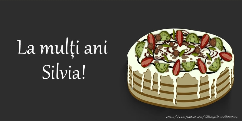La mulţi ani, Silvia! | Felicitare cu desen cu tort de fructe | Felicitari de zi de nastere