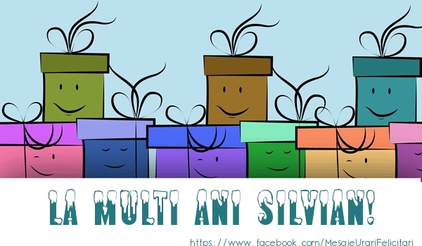Această felicitare cu cadouri zâmbărețe din colecția noastră de felicitari de la multi ani cu numele Silvian are o notă de originalitate și îți oferă ocazia să faci o persoană să se simtă specială datorită faptului că acolo este numele ei. Felicitarea se poate descărca gratuit sau se poate trimite prin Whatsapp, Facebook, Twitter, Pinterest. Imagine de la mulți ani cu cadouri zâmbărețe cu dimensiunile 600px x 350px și cu textul La multi ani Silvian!.