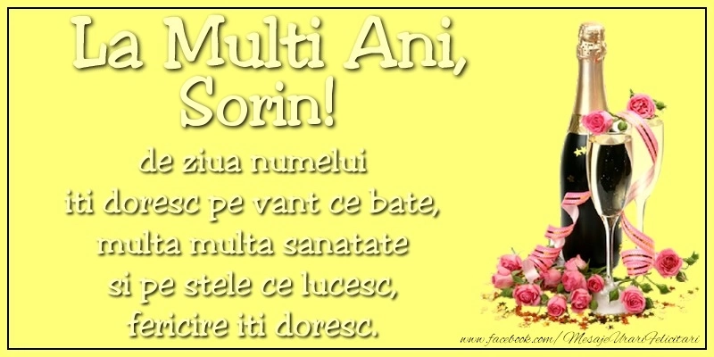 La multi ani, Sorin! de ziua numelui iti doresc pe vant ce bate, multa multa sanatate si pe stele ce lucesc, fericire iti doresc.
