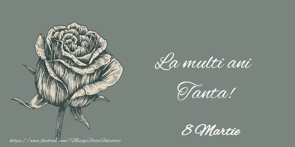 Oferiți mai mult decât un simplu cadou - oferiți o emoție personalizată de Ziua Femeii cu numele Tanta! Felicitarea de 8 Martie cu desen cu trandafir este menită să încânte și să emoționeze, sărbătorind feminitatea în toată splendoarea sa.