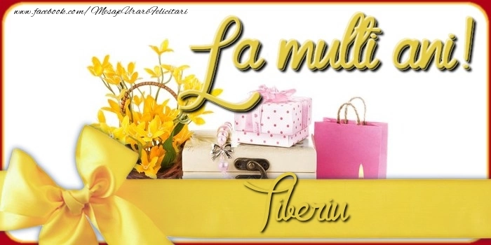 La multi ani, Tiberiu | Felicitare cu cadouri și flori | Felicitari de la multi ani