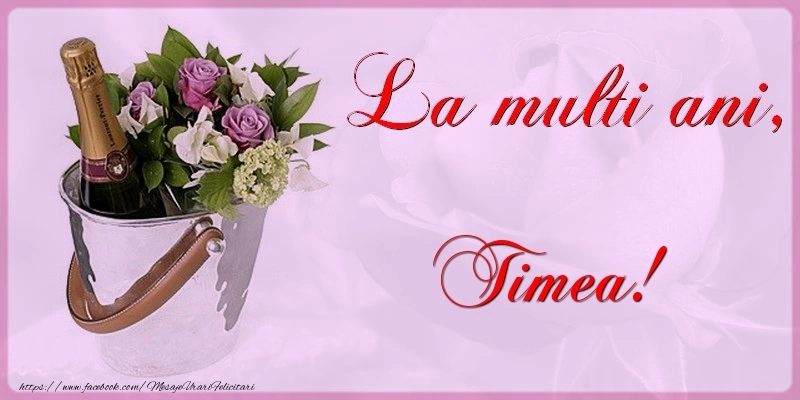 Felicitarea cu șampanie și flori în frapieră este ca o explozie de bucurie și culoare, iar numele Timea este adăugat cu gingășie pentru a personaliza această experiență de sărbătoare. Este modul tău de a spune la mulți ani într-un mod unic și special!