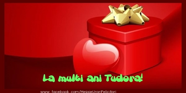 La multi ani Tudora! | Felicitare cu cadou sub formă de inimă roșie | Felicitari de zi de nastere