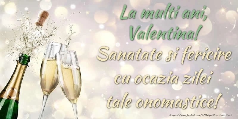 La multi ani, Valentina! Sanatate, fericire cu ocazia zilei tale onomastice! | Felicitare cu șampanie care se deschide și pahare | Felicitari de Ziua Numelui