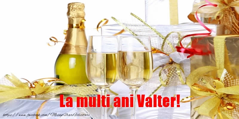 Felicitarea cu șampanie cu 2 pahare și cadouri este ca o explozie de bucurie și culoare, iar numele Valter este adăugat cu gingășie pentru a personaliza această experiență de sărbătoare. Este modul tău de a spune la mulți ani într-un mod unic și special!