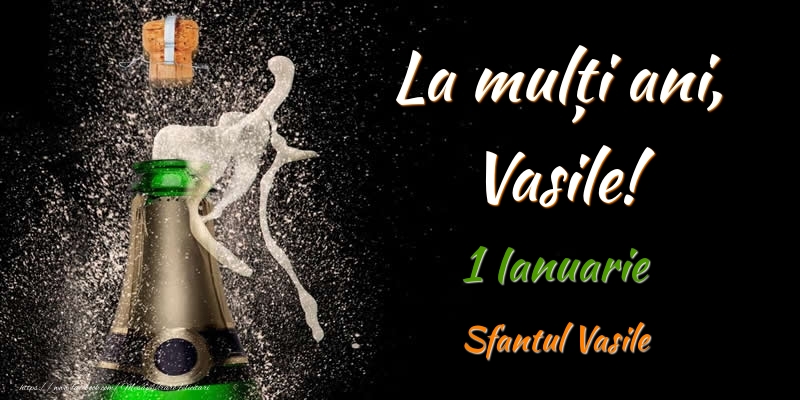La multi ani, Vasile! 1 Ianuarie Sfantul Vasile | Felicitare cu sampanie pe fundal negru pentru bărbați sau femei | Felicitari de Ziua Numelui
