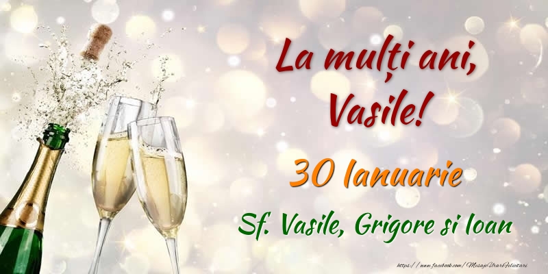 La multi ani, Vasile! 30 Ianuarie Sf. Vasile, Grigore si Ioan | Felicitare cu șampanie care se deschide și 2 pahare | Felicitari de Ziua Numelui
