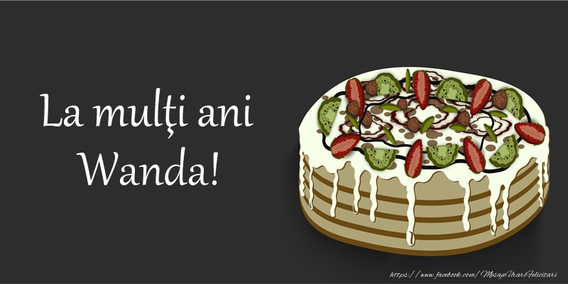 La mulţi ani, Wanda! | Felicitare cu desen cu tort de fructe | Felicitari de zi de nastere