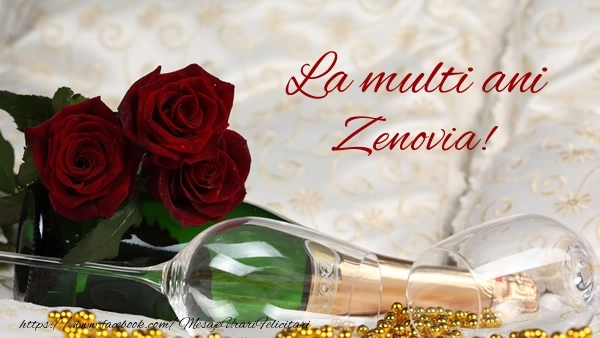 Această felicitare cu trandafiri și pahare de șampanie din colecția noastră de felicitari de la multi ani cu numele Zenovia are o notă de originalitate și îți oferă ocazia să faci o persoană să se simtă specială datorită faptului că acolo este numele ei. Felicitarea se poate descărca gratuit sau se poate trimite prin Whatsapp, Facebook, Twitter, Pinterest. Imagine de la mulți ani cu trandafiri și pahare de șampanie cu dimensiunile 600px x 338px și cu textul La multi ani Zenovia!.