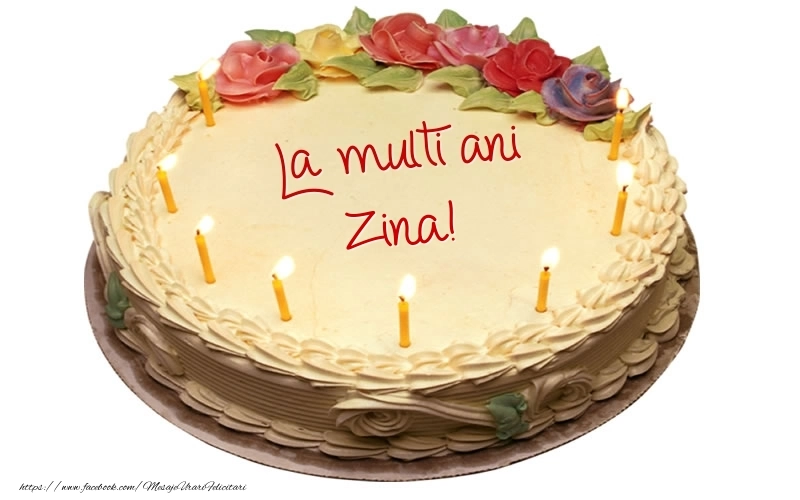 Cu un design îmbietor și un aer de sărbătoare, această felicitare cu tort cu trandafiri și lumânări este menită să aducă un zâmbet larg pe fața celui care o primește. Această felicitare este un mod minunat de a spune "La mulți ani, Zina!" într-un mod cu adevărat special și memorabil. Fiecare trandafir și fiecare lumânare simbolizează o urare sinceră de fericire și prosperitate în noul an de viață. Felicitarea de zi de naștere pentru Zina se poate descărca gratuit sau se poate trimite prin Whatsapp, Facebook, Twitter, Pinterest. Imaginea are dimensiunile 800px x 500px și textul La multi ani Zina! - Tort.
